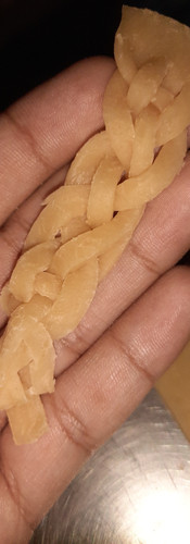 I started thinking about the ways I could make my dough softer and mailable. In order to do that I obviously had to use more egg to balance out the already existing oil and maybe a little bit of mixed flour as the dough I was using was a mixture of all purpose flour and wheat flour. I decided the add a little more of all purpose flour as that dough is more stretchy and I wanted to add that component as well. After kneading it well I rolled it out and saw that it was pretty close to the original dough therefore I knew I was going the right way. Eventually after a long time and a lot of kneading, I reached the desired dough. This dough-ing process reminded me of M2m project because just like the Jaali pattern project made my hands hurt, todays expedition to get the right dough had similar a feelings.